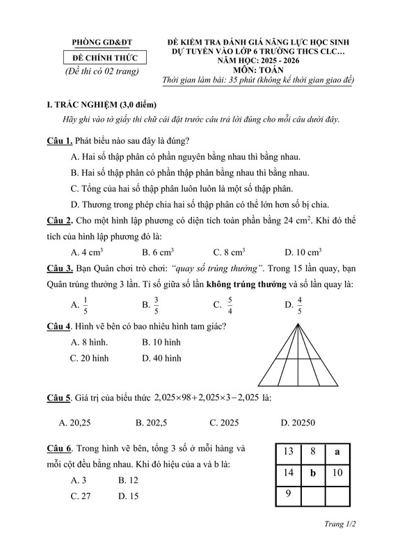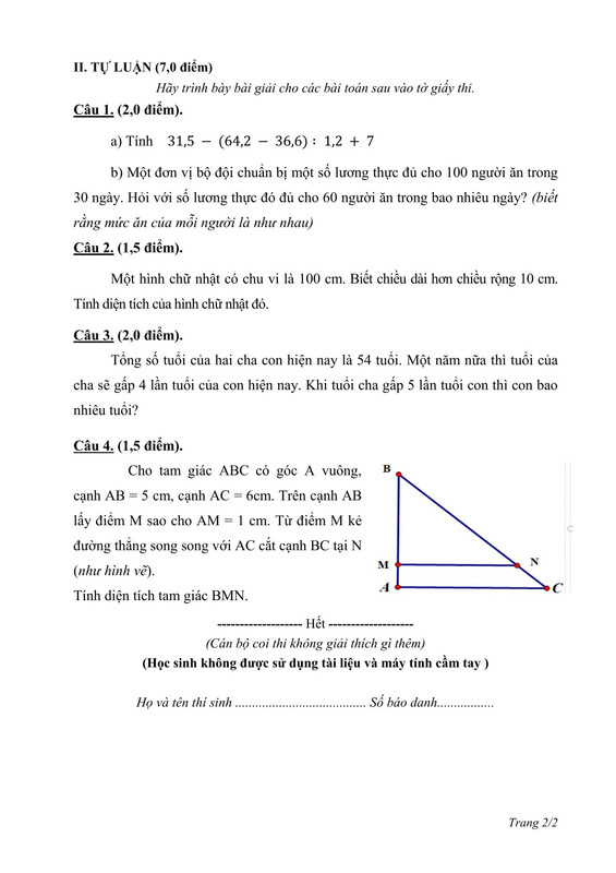 ĐỀ THI MÔN TOÁN