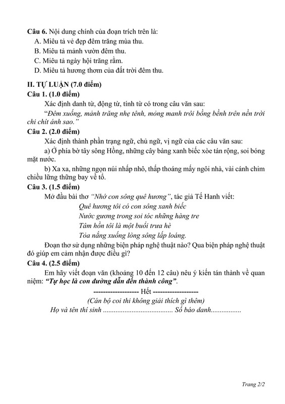 ĐỀ THI MÔN TIẾNG VIỆT