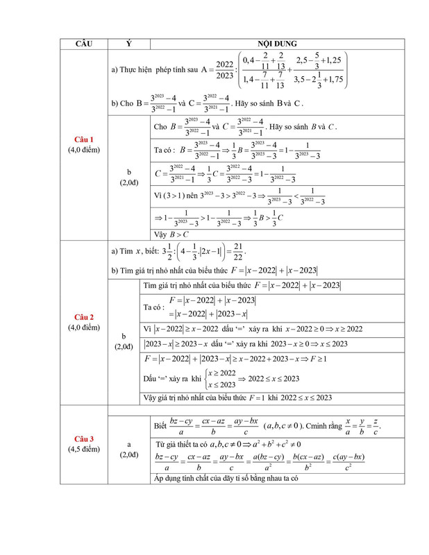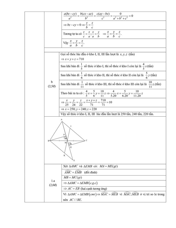 1. Biết abz−cy=bcx−az=cay−bx (a,b,c=0). Chứng minh rằng ax=by=cz.
