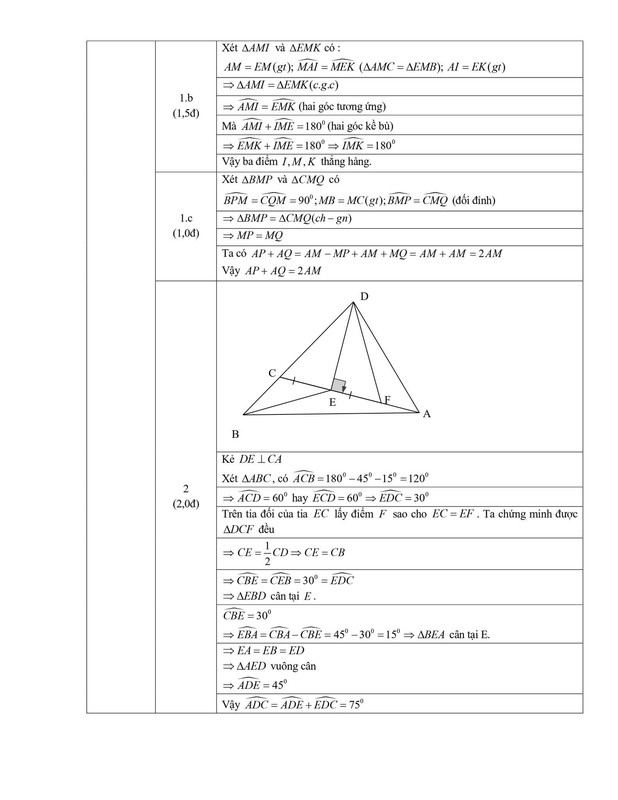 c) Từ B kẻ BP⊥AM, từ C kẻ CQ⊥AM (P,Q∈AE). Chứng minh AP+AQ=2AM.