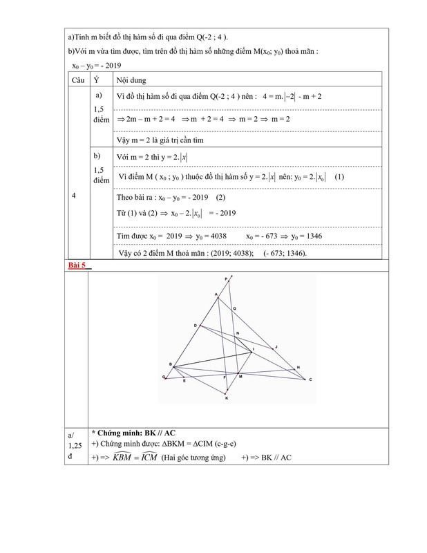 b) Với mm vừa tìm được, tìm trên đồ thị hàm số những điểm M(x0;y0)M(x_0; y_0) thỏa mãn: x0y0=2019x_0 - y_0 = -2019